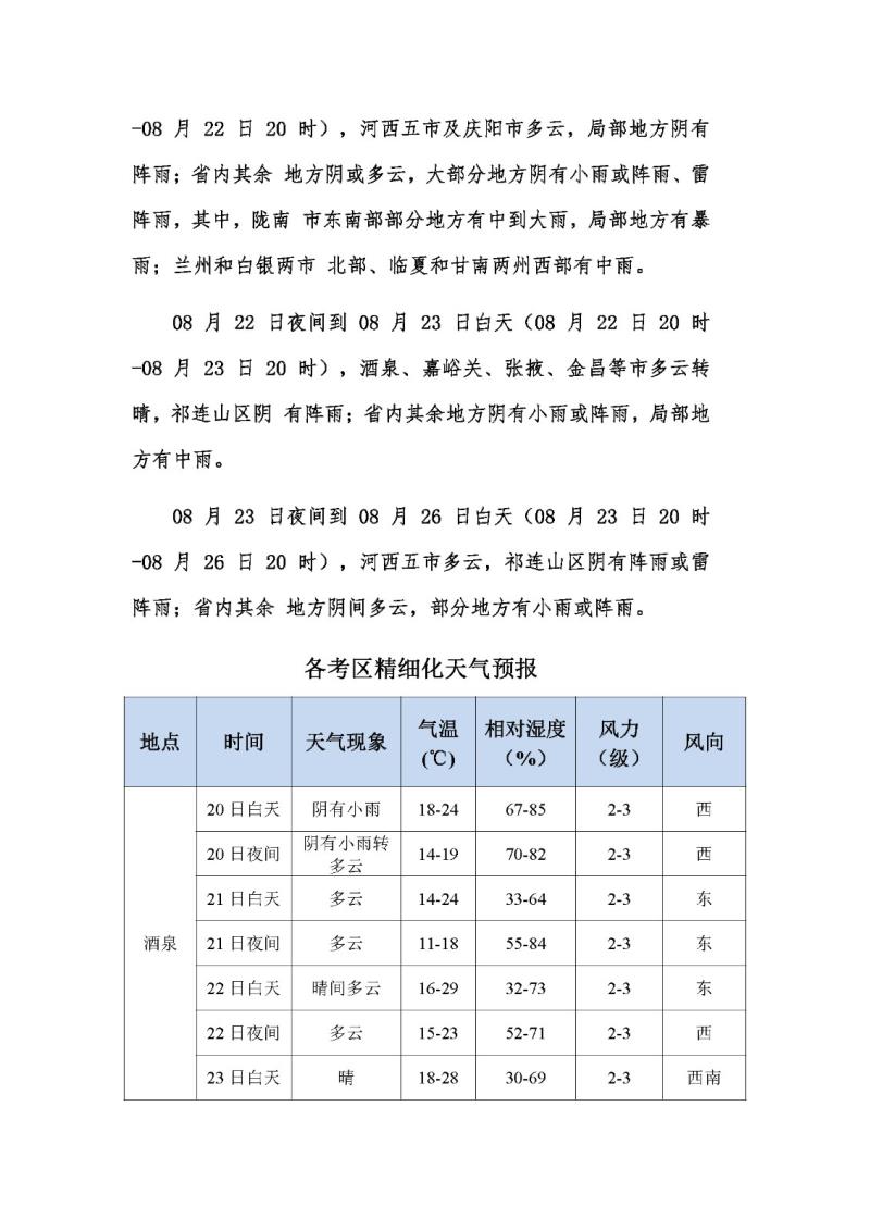 【2025 年08 月19 日】2025 年注册会计师全国统一考试甘肃考区专题天气预报(一)